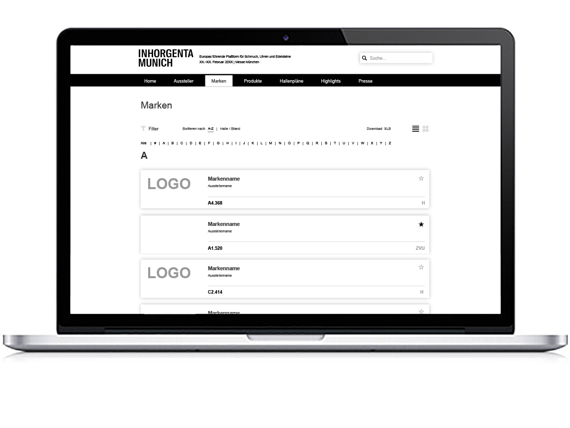 Visitors can find the list of trademarks in the Online Exhibitor Directory and in the app. As mentioning your company’s brands is already part of your basic entry, you can simply upgrade these entries by adding your logo.