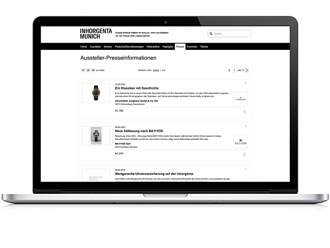 If you organize a press conference, press talks or other press events at your stand or outside the exhibition grounds, you can announce these dates online in the press calender. The press calender is available free of charge in the press section of the INHORGENTA website and will be displayed in the press center during the fair. It offers journalists a good overview of the events reported to the press team.